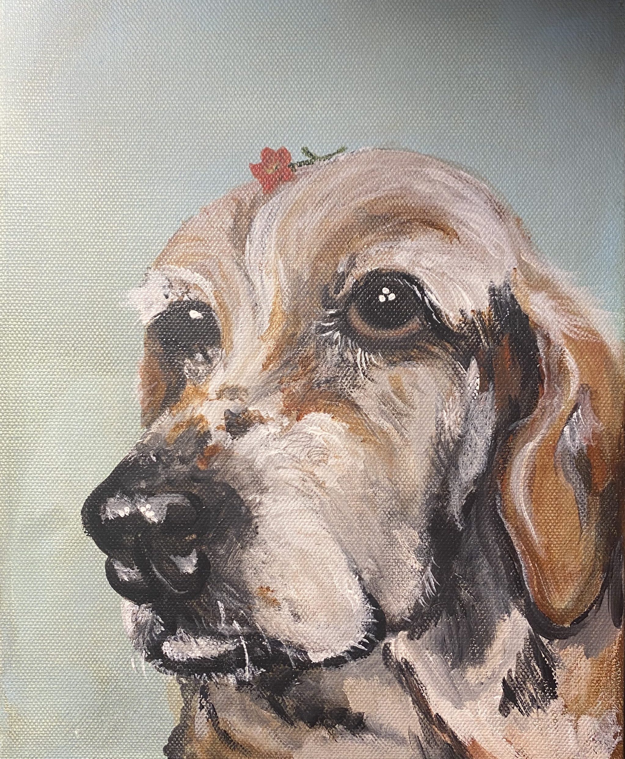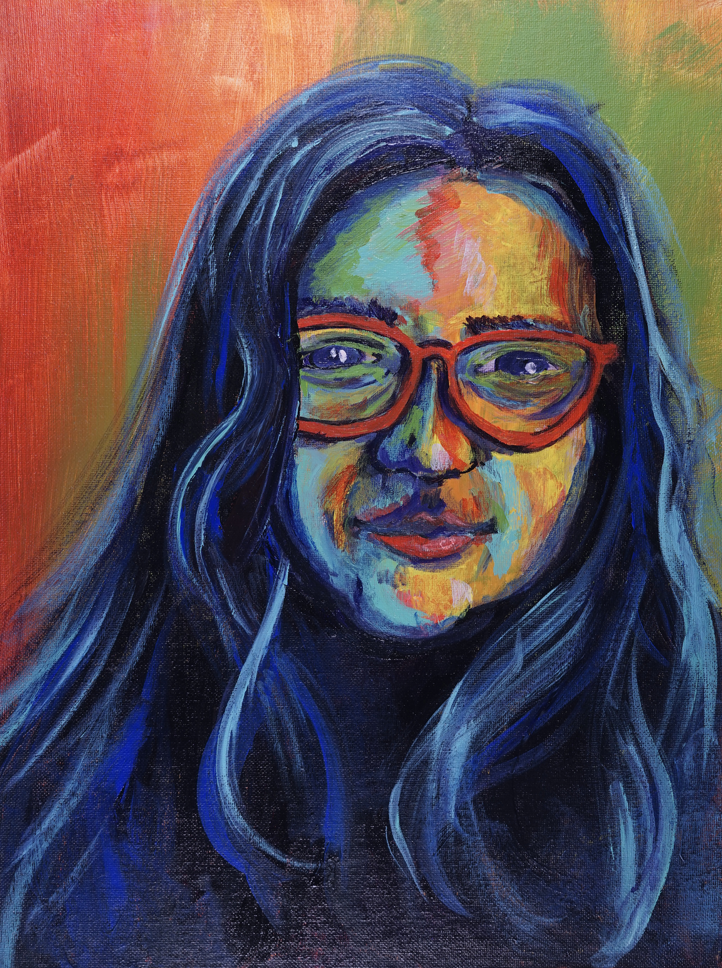 Self-portrait done in the fauvist art style. Acrylic on canvas board.