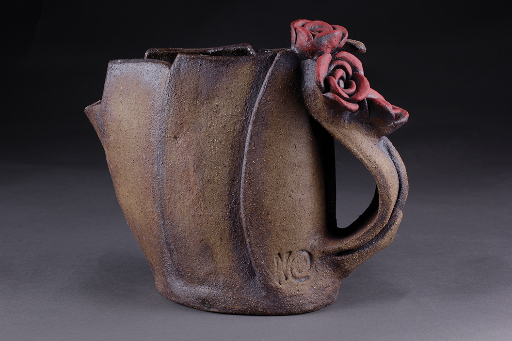 Hand-built earthenware pitcher sealed with an iron oxide stain for a shadowed effect.
